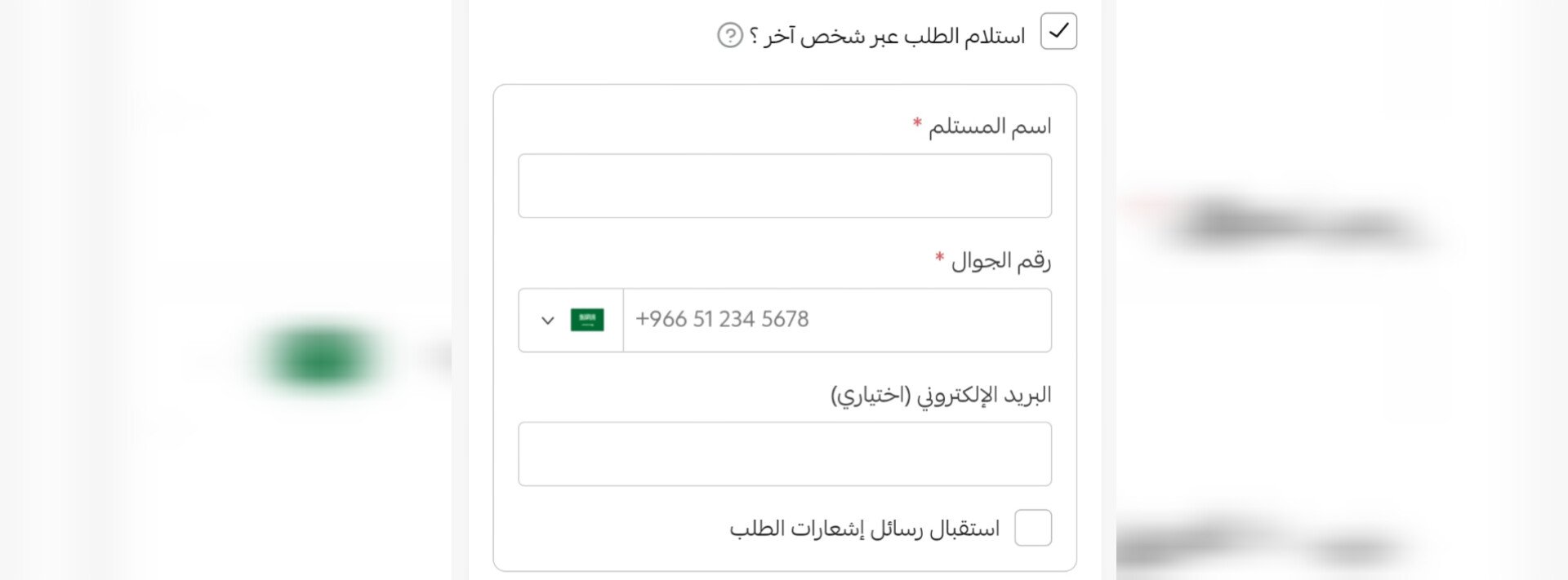 4- اسفل العنوان قم بالضغط على خيار "استلام الطلب عبر شخص آخر"