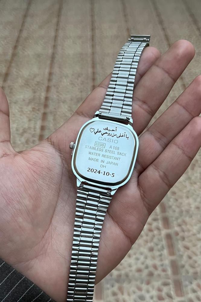 ساعة كاسيو نسائيه مع نحت ليزر ( اسم - عباره - تأريخ )