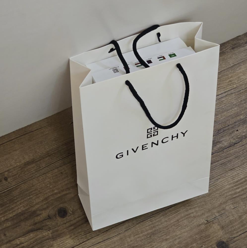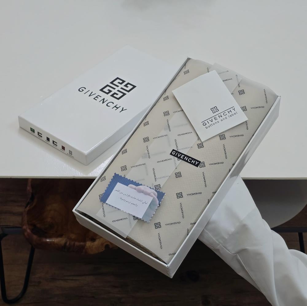 • مع ملحقات قوتشي ( علبة - كيس - ليبرات - 8 زرارات نحت لوقو جفنشي - بروش جيب معدني بشعار الماركه )